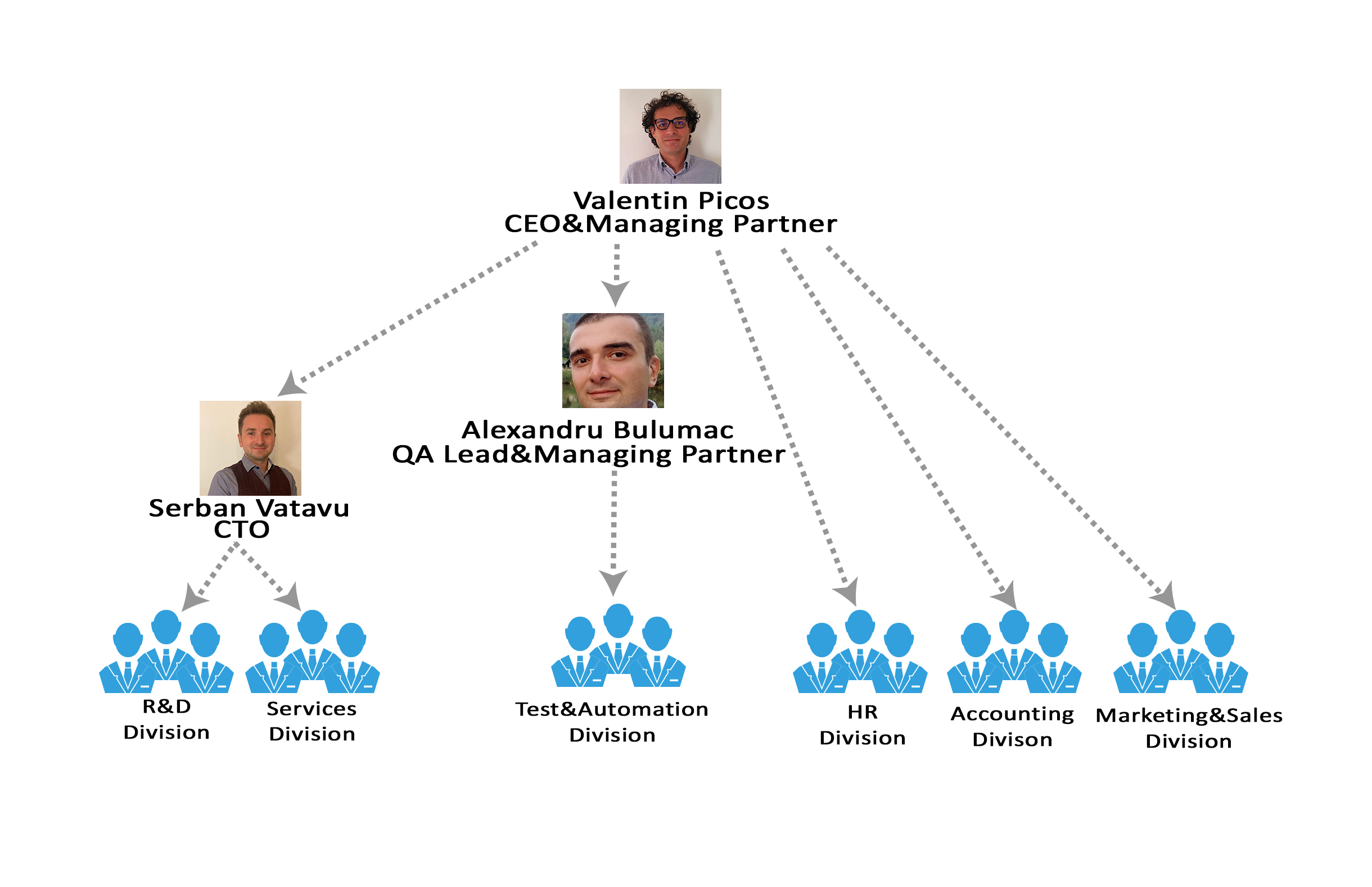 -CTO: ensure technical background for the teams; responsible with delivery for all inhouse projects; responsible for both divisions R&D and Services; Create the technological path of the company; ensure; support in the sale process.